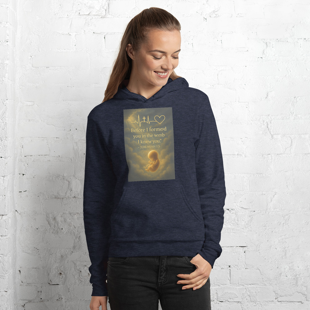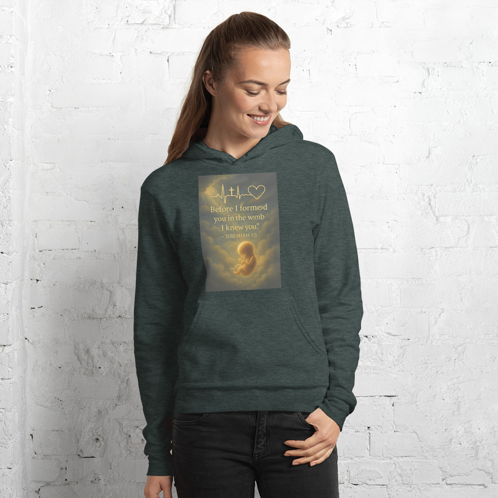 “Before I Formed You” Hoodie – Jeremiah 1:5 Faith-Based Heartbeat Design