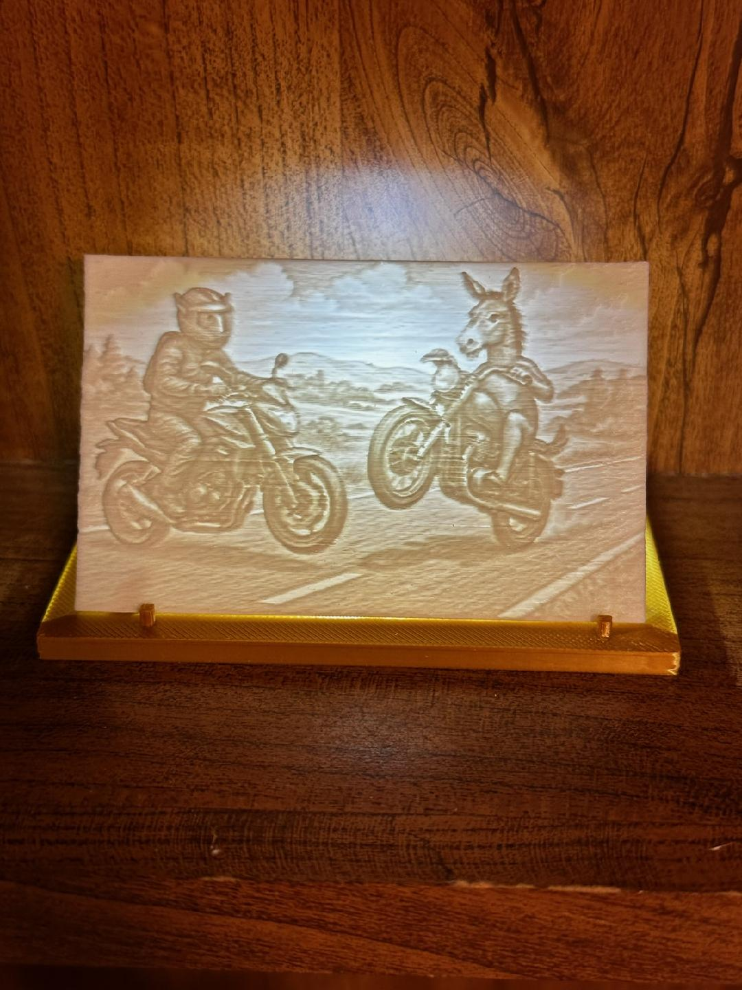 Donkeys on motorcycles one following all safetly precautions and the other no gear doing wheelies