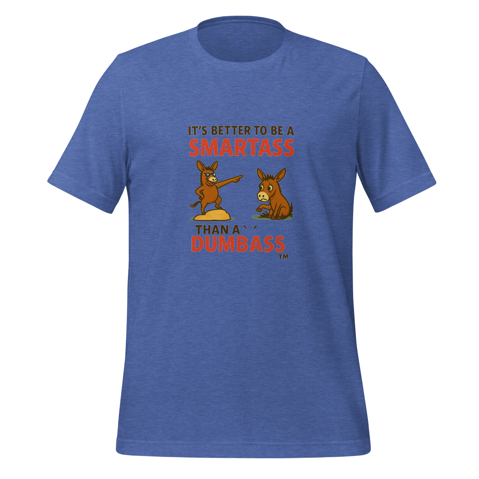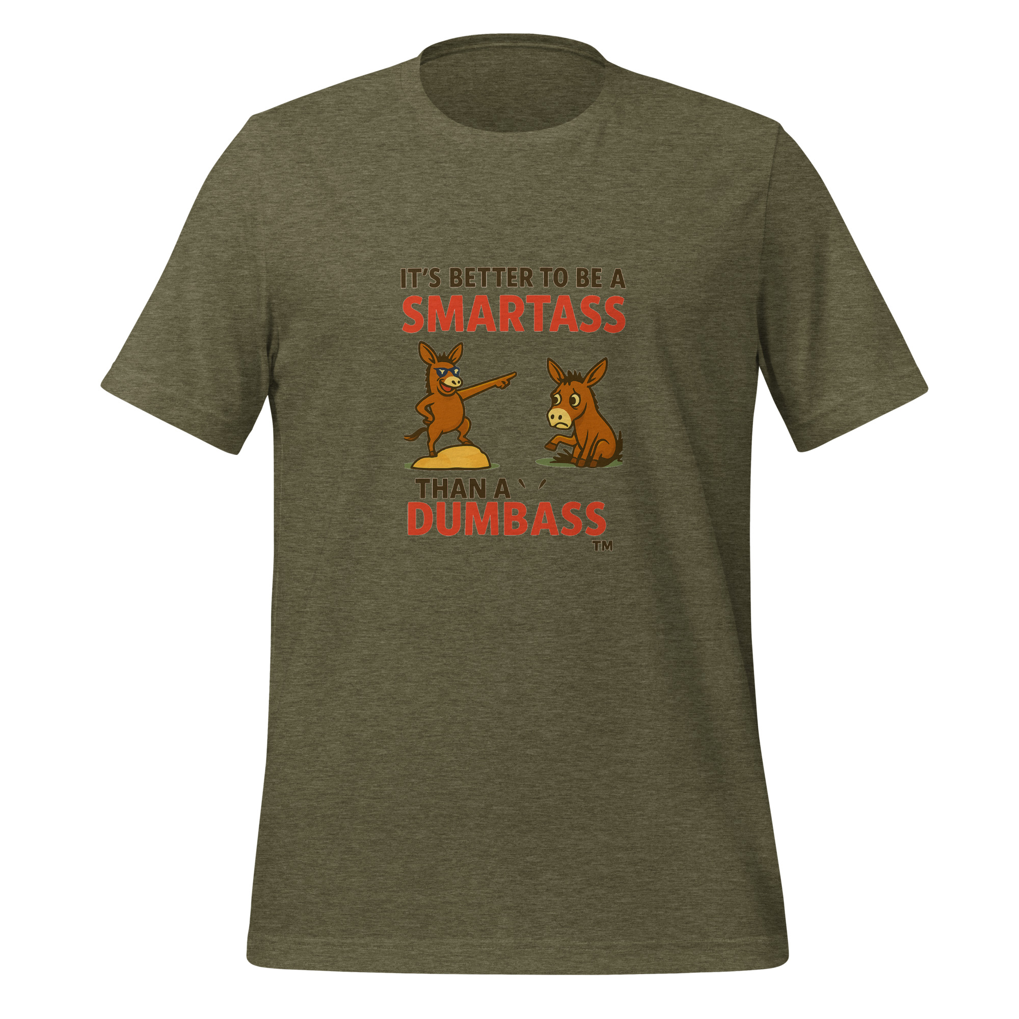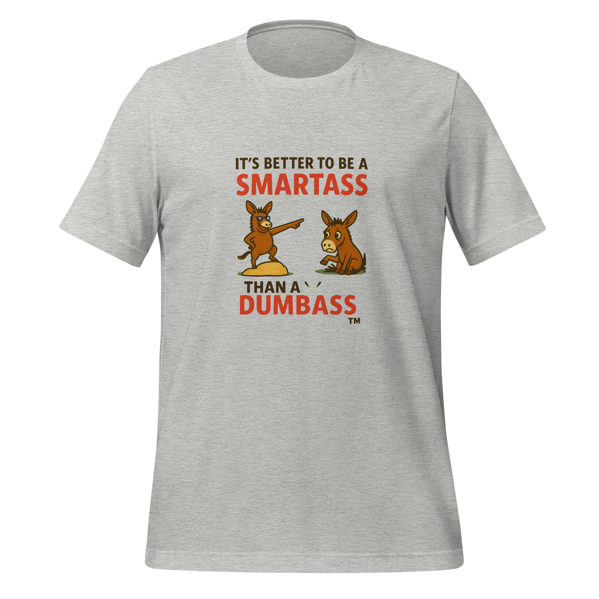 Make your point without saying a word. This bold tee delivers the ultimate one-liner: “It’s better to be a smartass than a dumbass™.” Printed on the premium Bella + Canvas 3001 unisex shirt, it’s soft, breathable, and built to last.