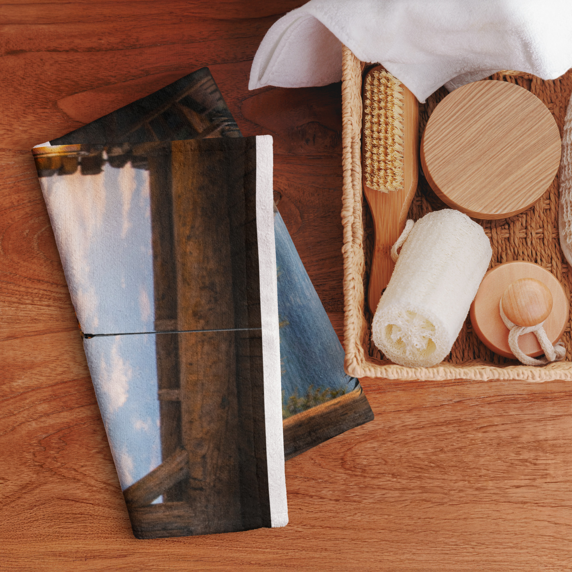 Soft and absorbent with a vibrant printed front and cotton backing, this hand towel blends everyday function with refined outdoor-inspired style.